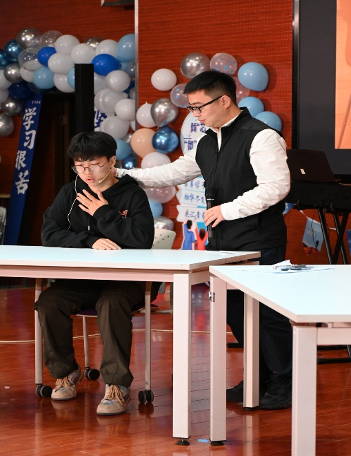 阴玥副院长随后压轴登场,一首《向天再借五百年》气势磅礴。他借歌声鼓励同学们突破自我、不惧艰险,肩负起“为国铸剑”的使命,豪迈唱腔赢得阵阵掌声。