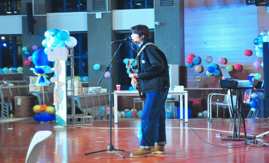 晚会前,马炳和院长通过视频送来寄语与祝福,真挚的话语深深感染了在场每一位师生。现场节目精彩纷呈,HighCold 乐队表演瞬间点燃全场热情,青春活力尽情释放。随后的歌曲演唱中,同学们用歌声串联起青春记忆,悠扬旋律沁人心脾。《咆哮》独舞展现青春张力,《青春不眠》舞蹈串烧活力四射,乐器合奏动人心弦,由辅导员王一星出演的《寻心》情景剧更是引发全场情感共鸣,成为晚会亮点。抽奖环节气氛热烈,为晚会增添难忘回忆。