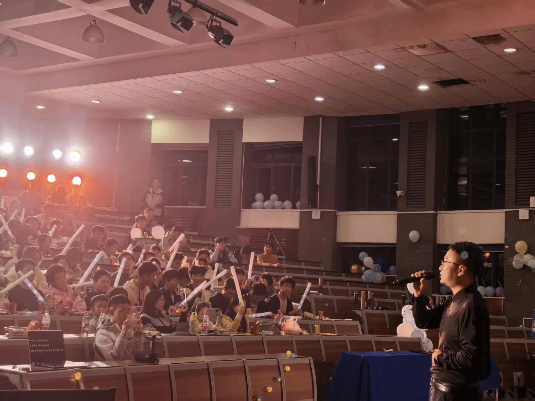 晚会尾声,全场师生挥舞荧光棒,共同合唱《夜空中最亮的星》,歌声满含青春激情与对未来的展望。