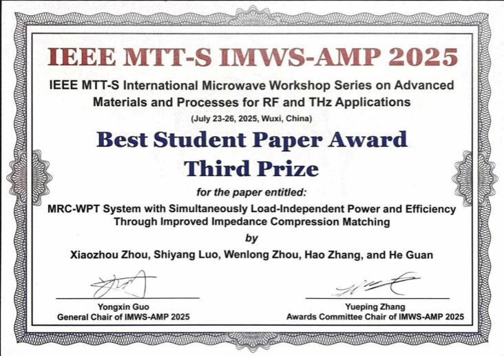 2025年7月23至26日,江苏省产业技术研究院和香港城市大学青岛研究院主办的国际微波系列研讨会(IEEE MTT-S International Microwave Workshop Series on Advanced Materials and Processes for RF and THz Applications)在江苏省无锡市成功召开。经过评审,会议最终评选出来自悉尼大学、上海交通大学、东南大学、电子科技大学和欧冠在线直播