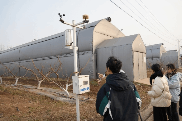 随后,实践队走进田间地头,实地观摩了智能传感器、多功能气象站等设施在农业生产中的具体应用。这些设备实时采集信息,为作物管理与田间决策提供数据支撑,是农业智能化与生产场景深度融合的生动体现。